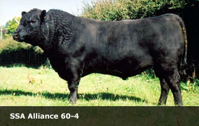 From the dominant Sitz Alliance line, 60-4 is line bred to Standen 698 and Standen 97 – highly functional and productive matrons who had 24 natural calves between them before being flushed. Tremendous birth to growth spread and positive for fats, good docility - this sire has done well.